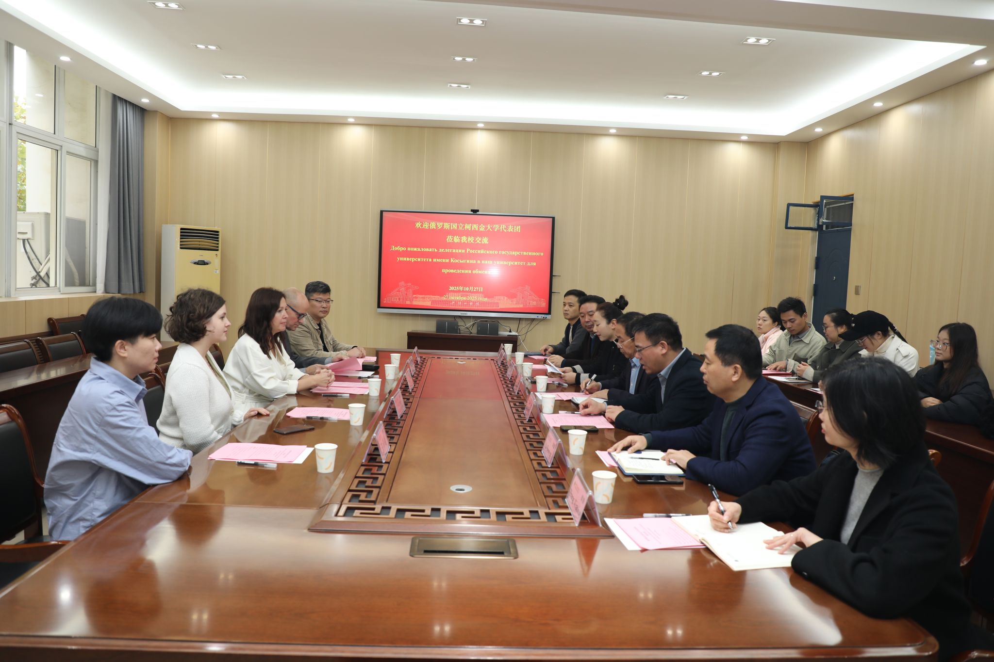 科瓦列娃·奥尔加·弗拉基米罗芙娜对学校的热情接待表示感谢。她介绍了俄罗斯国立柯西金大学艺术学院的办学情况,并表示愿意在双方师生互访、联合科研、本硕博联合培养、合作办学等方面开展务实合作。