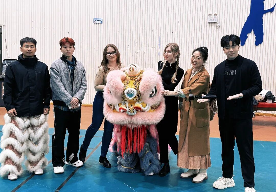 体育学院的训练馆中,技艺精湛的舞龙舞狮表演让她们近距离领略传统龙狮文化的磅礴气势,赞叹之余不时鼓掌欢呼、拍照记录。
